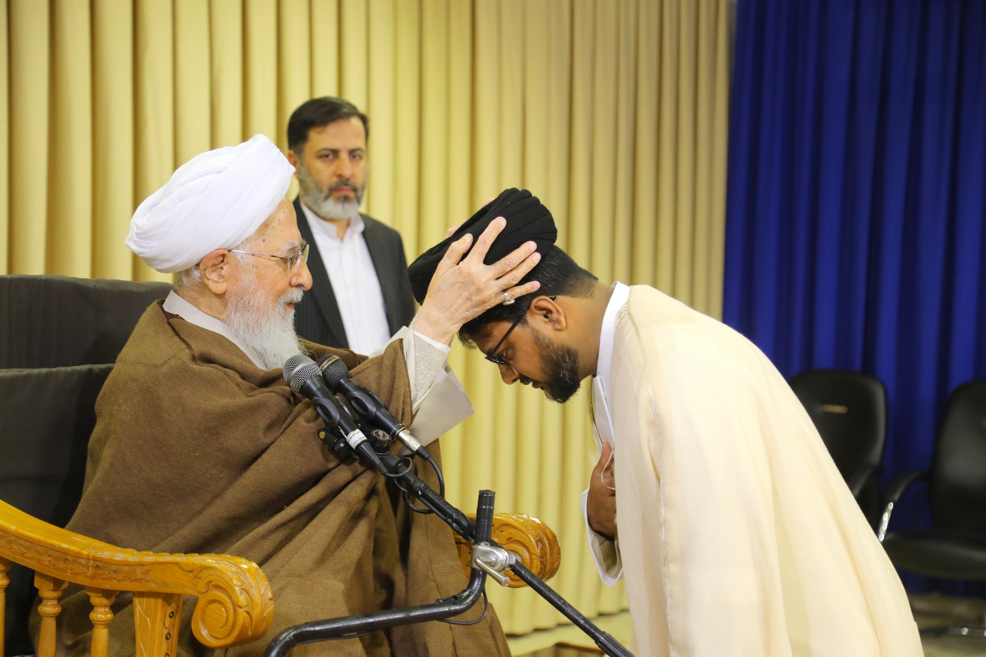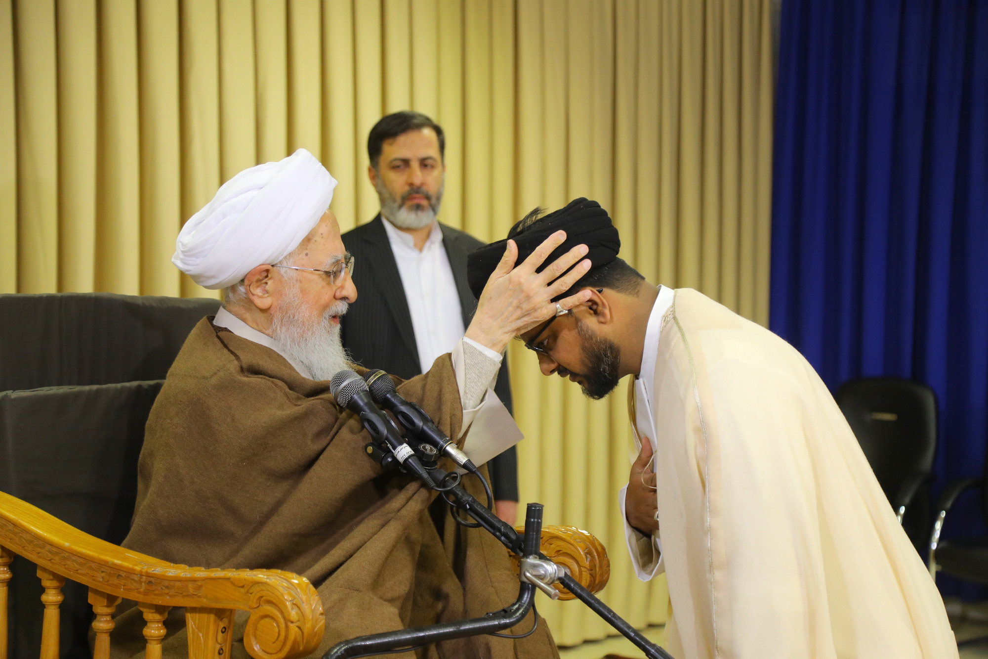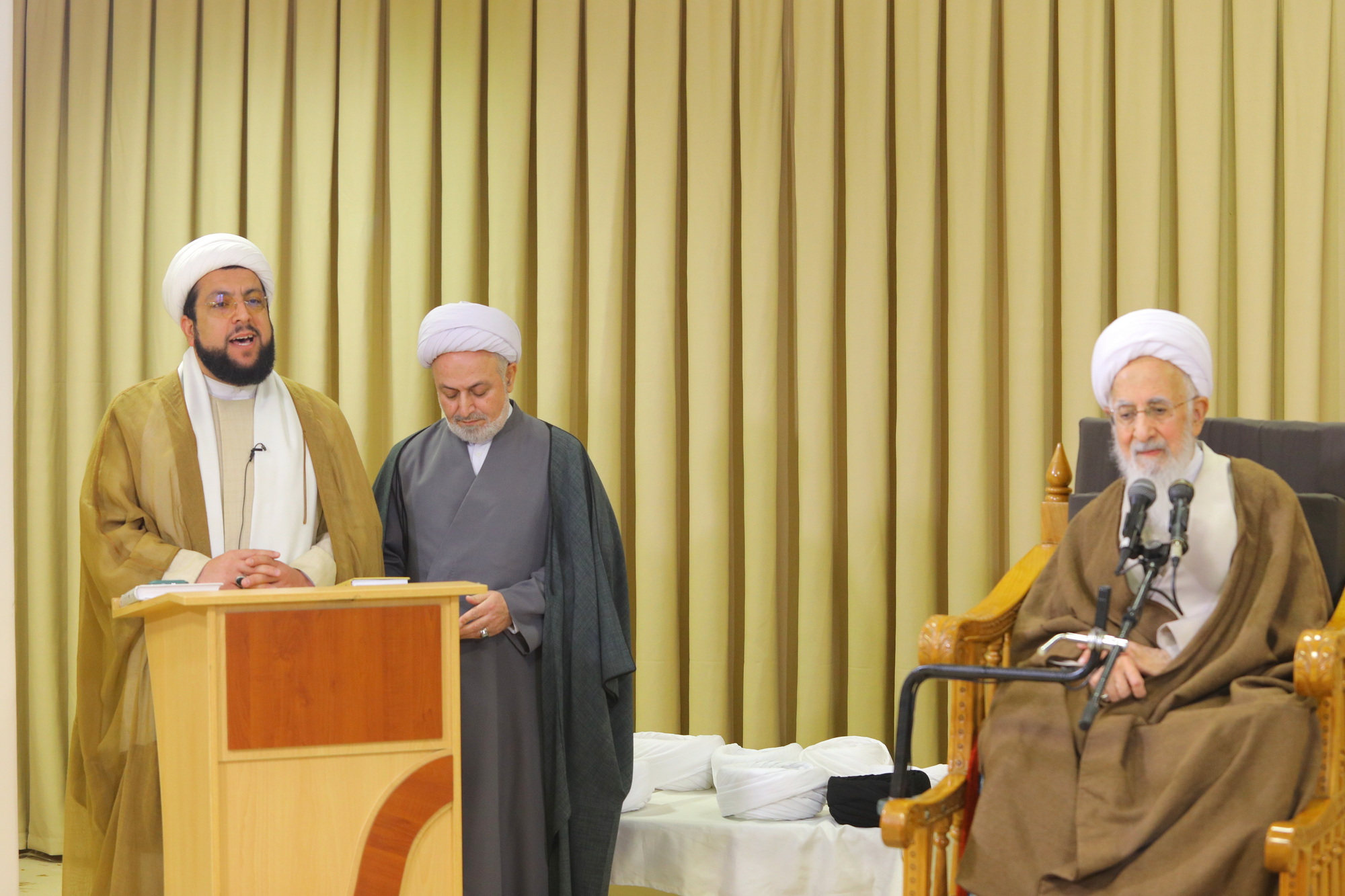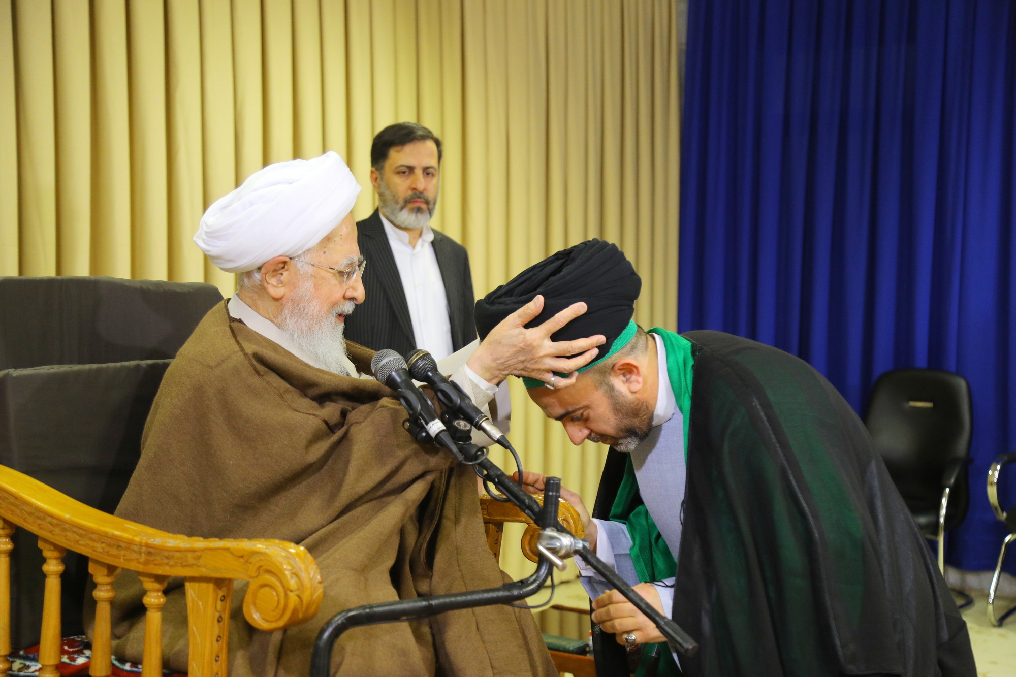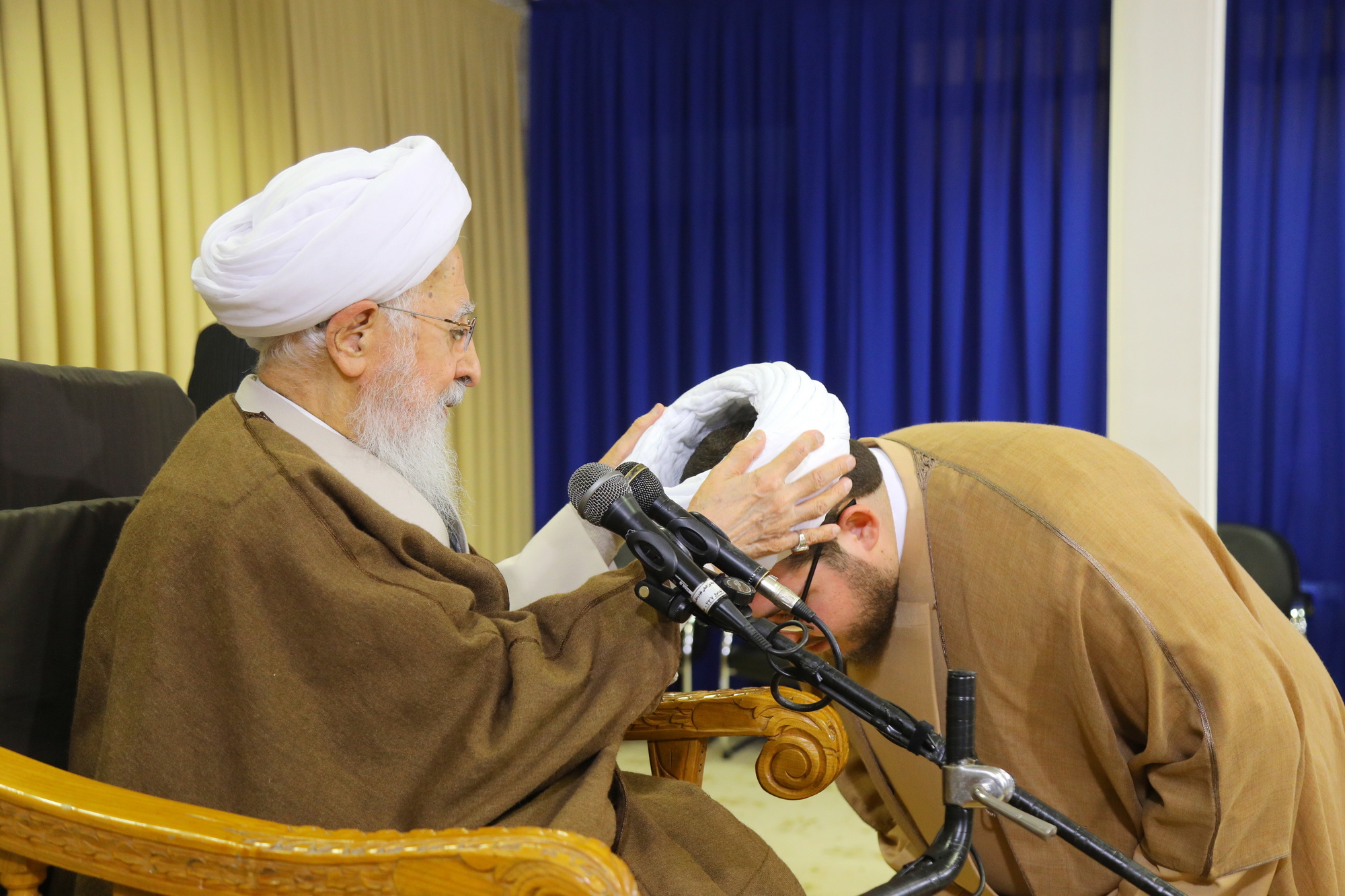 Isra'a NEWS Agency: in the birthday of Amir Al-Monin, the ceremony for wearing the special clothe of Shia clergy for some of Tollab was held. In this ceremony Ayatollah Javadi Amoli gave the clothe to some of Tollab in his house.