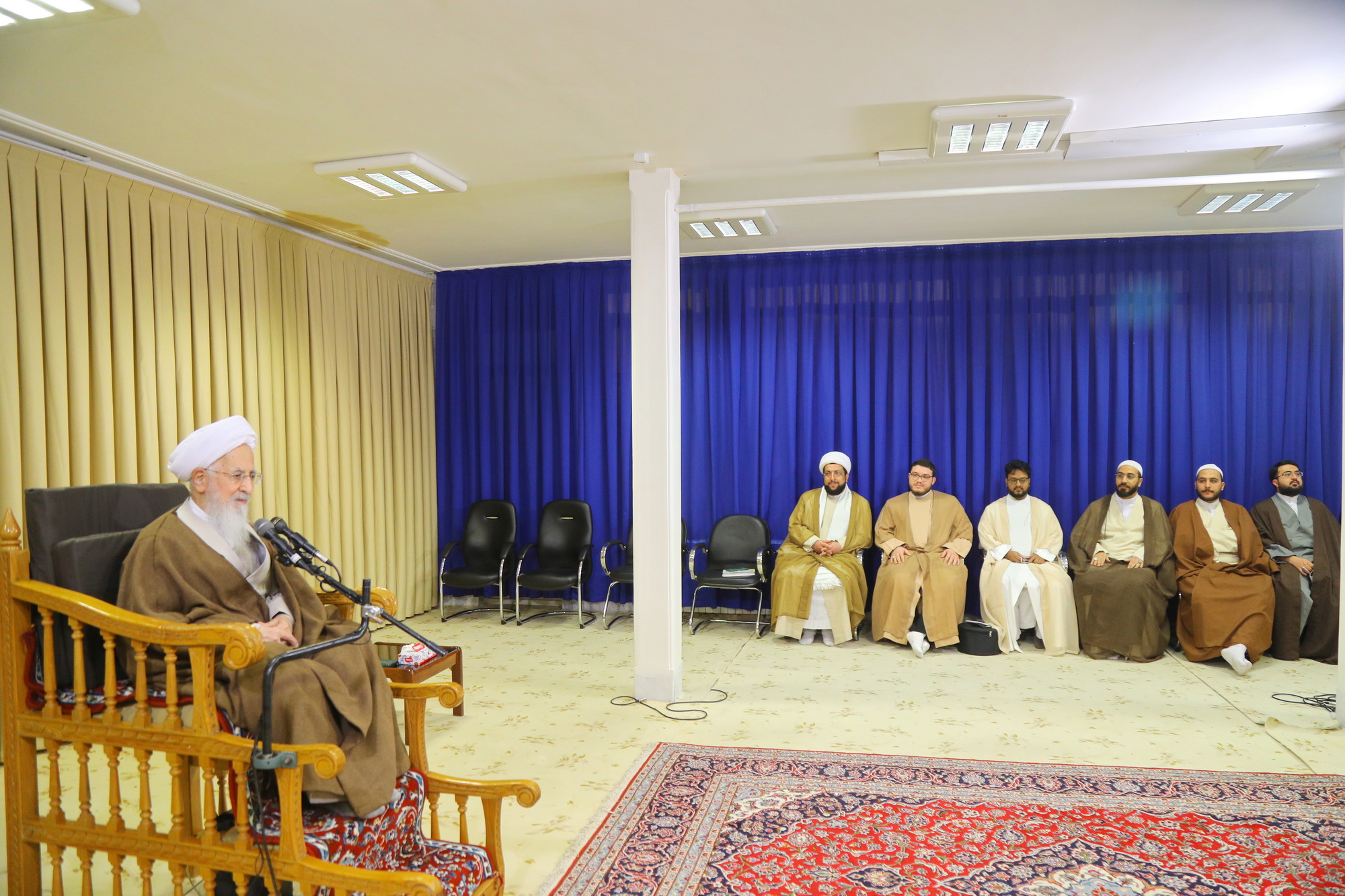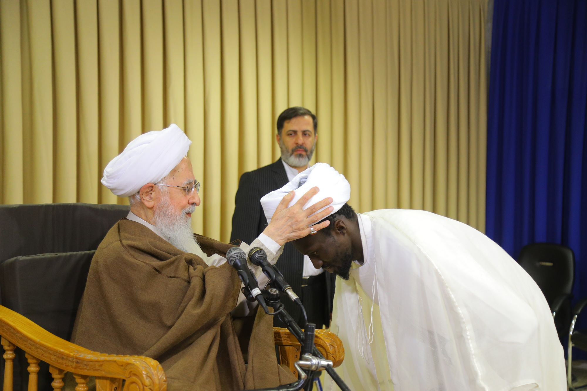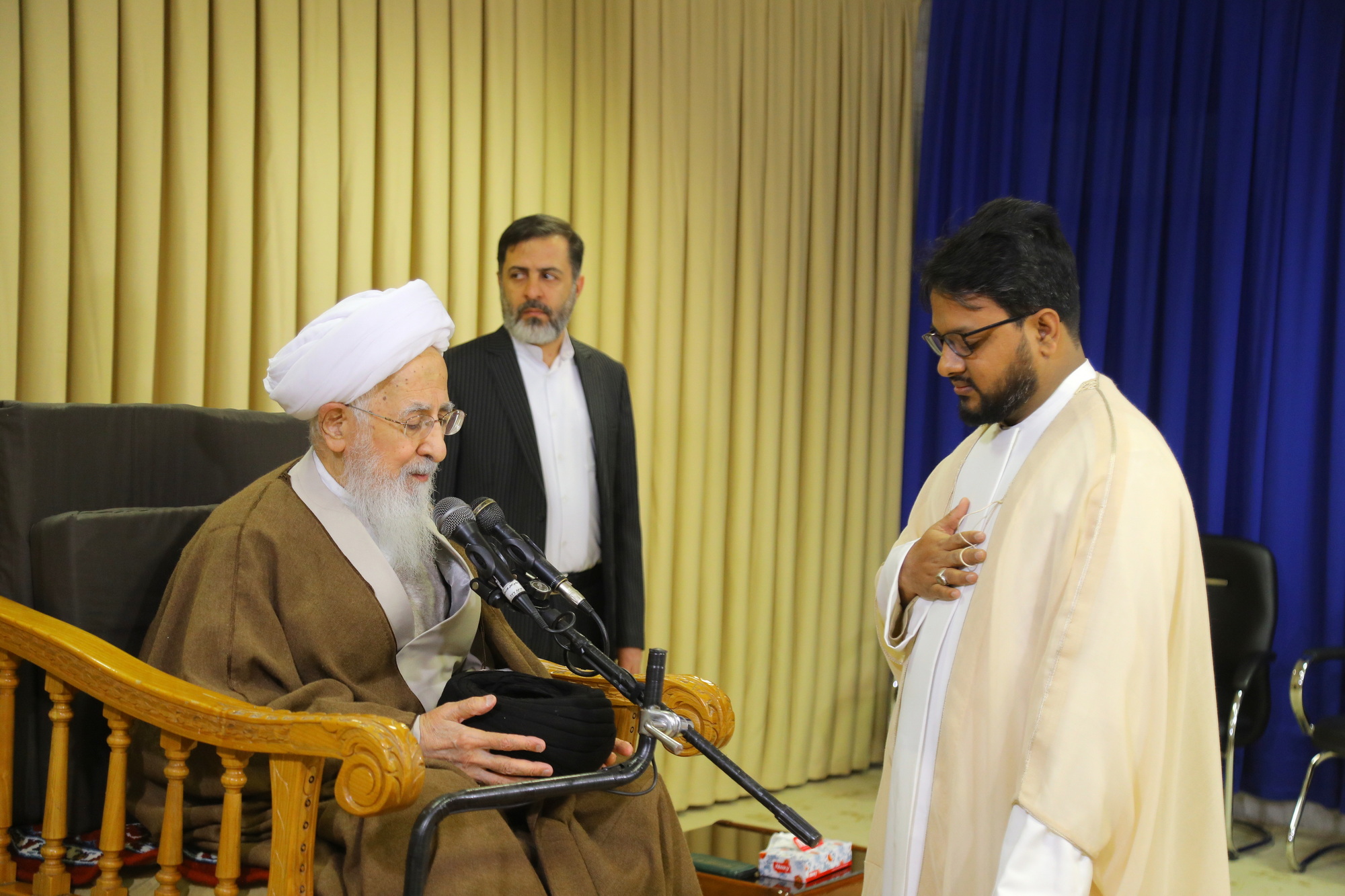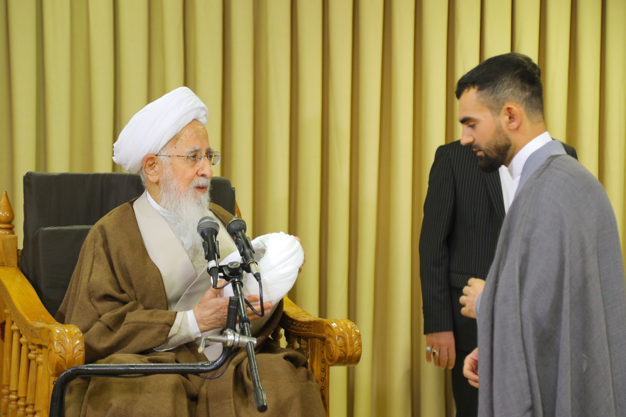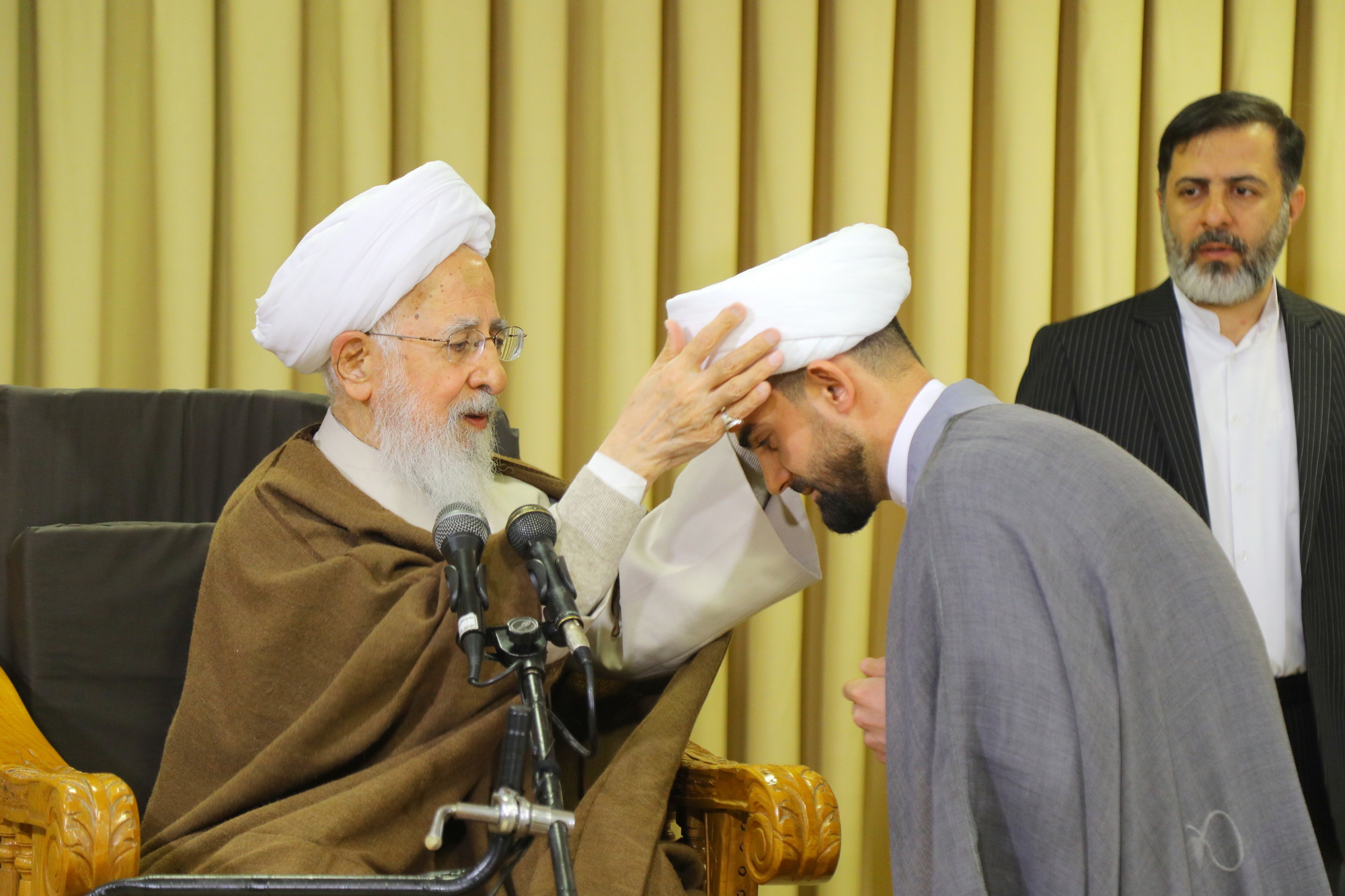 Isra'a NEWS Agency: in the birthday of Amir Al-Monin, the ceremony for wearing the special clothe of Shia clergy for some of Tollab was held. In this ceremony Ayatollah Javadi Amoli gave the clothe to some of Tollab in his house.
