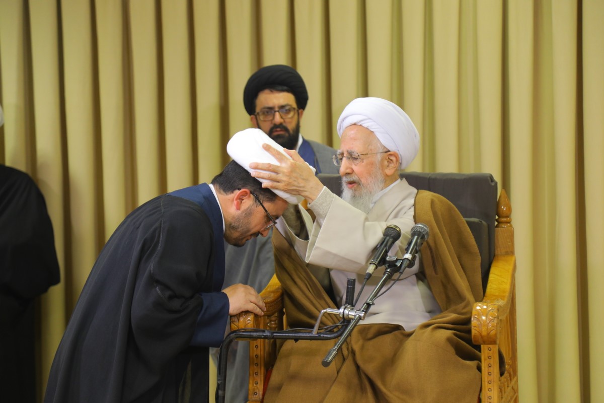 پایگاه اطلاع رسانی اسراء: همزمان با نیمه شعبان سالروز میلاد امام زمان (عجل الله تعالی فرجه الشریف) مراسم عمامه گذاری جمعی از طلاب حوزه های علمیه به دست حضرت آیت الله العظمی جوادی آملی در محل بیت معظم له برگزار شد.