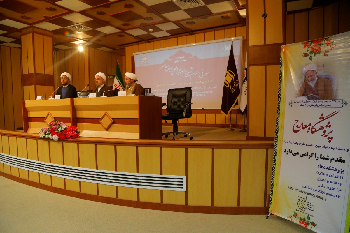 پایگاه اطلاع رسانی اسراء: چهارمین نشست علمی معرفی اسلام شیعی در عرصه بین الملل برای جهان معاصر با تکیه بر اندیشه های حضرت علامه جوادی آملی حفظه الله، روز پنجشنبه 18 آبان ماه در محل سالن کنفرانس بنیاد بین المللی علوم وحیانی اسراء برگزار گردید.