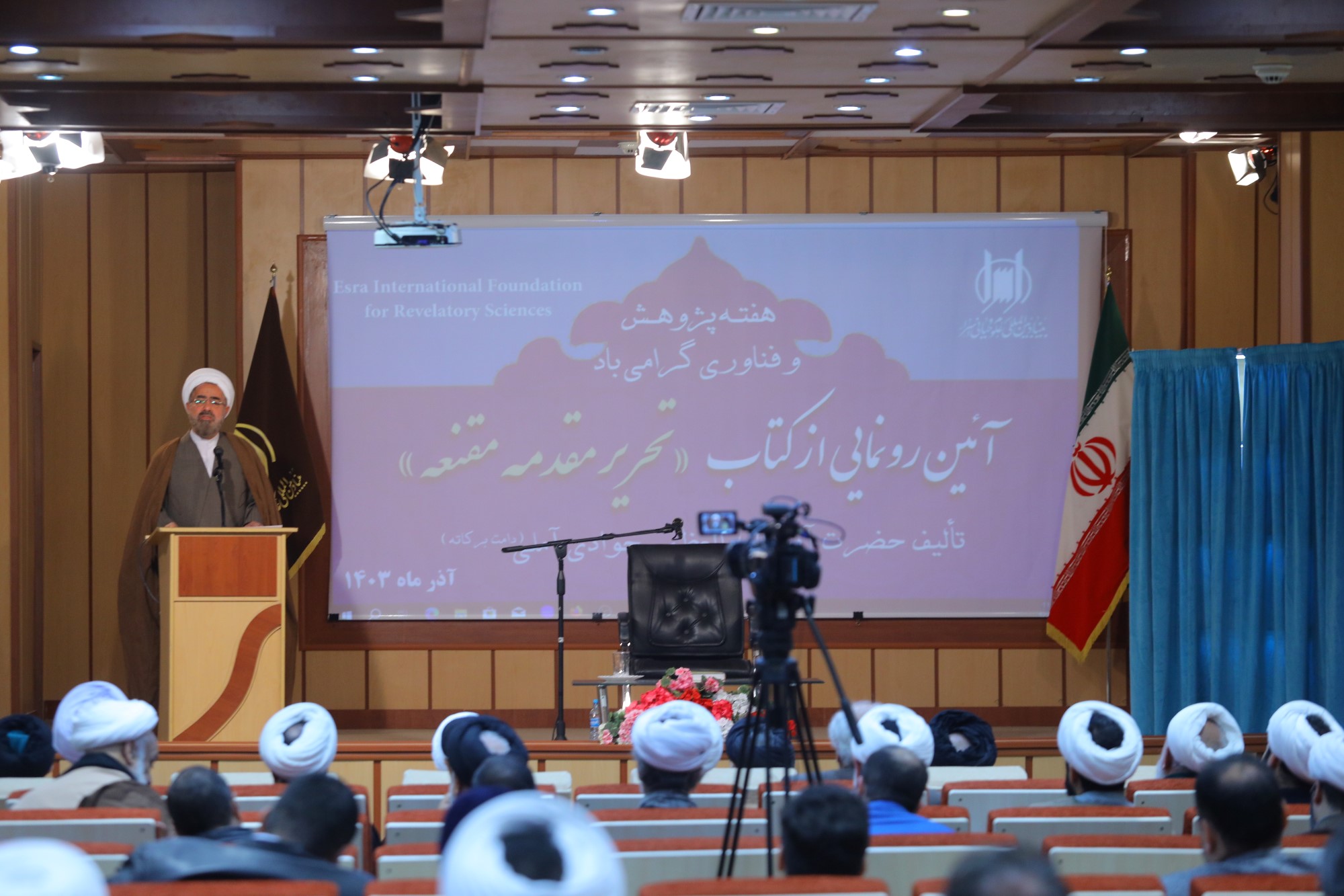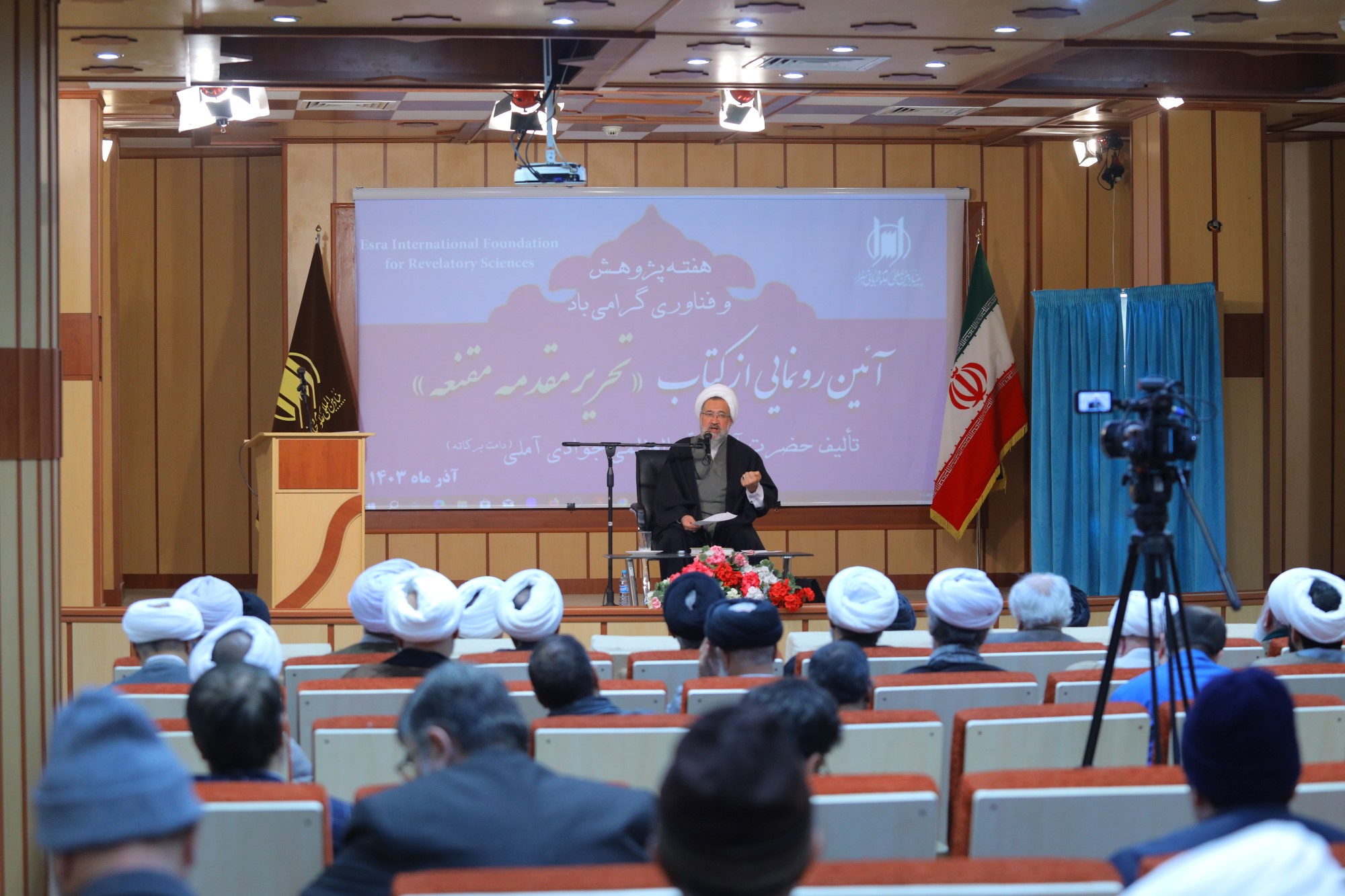 همایش آیین رونمایی از کتاب تحریر مقدمه مقنعه، تالیف ایت الله العظمی جوادی آملی به مناسبت هفته پژوهش و فناوری، صبح امروز با حضور اساتید، علما، طلاب و پژوهشگران در محل سالن همایش بنیاد بین المللی علوم وحیانی اسراء برگزار گردید.