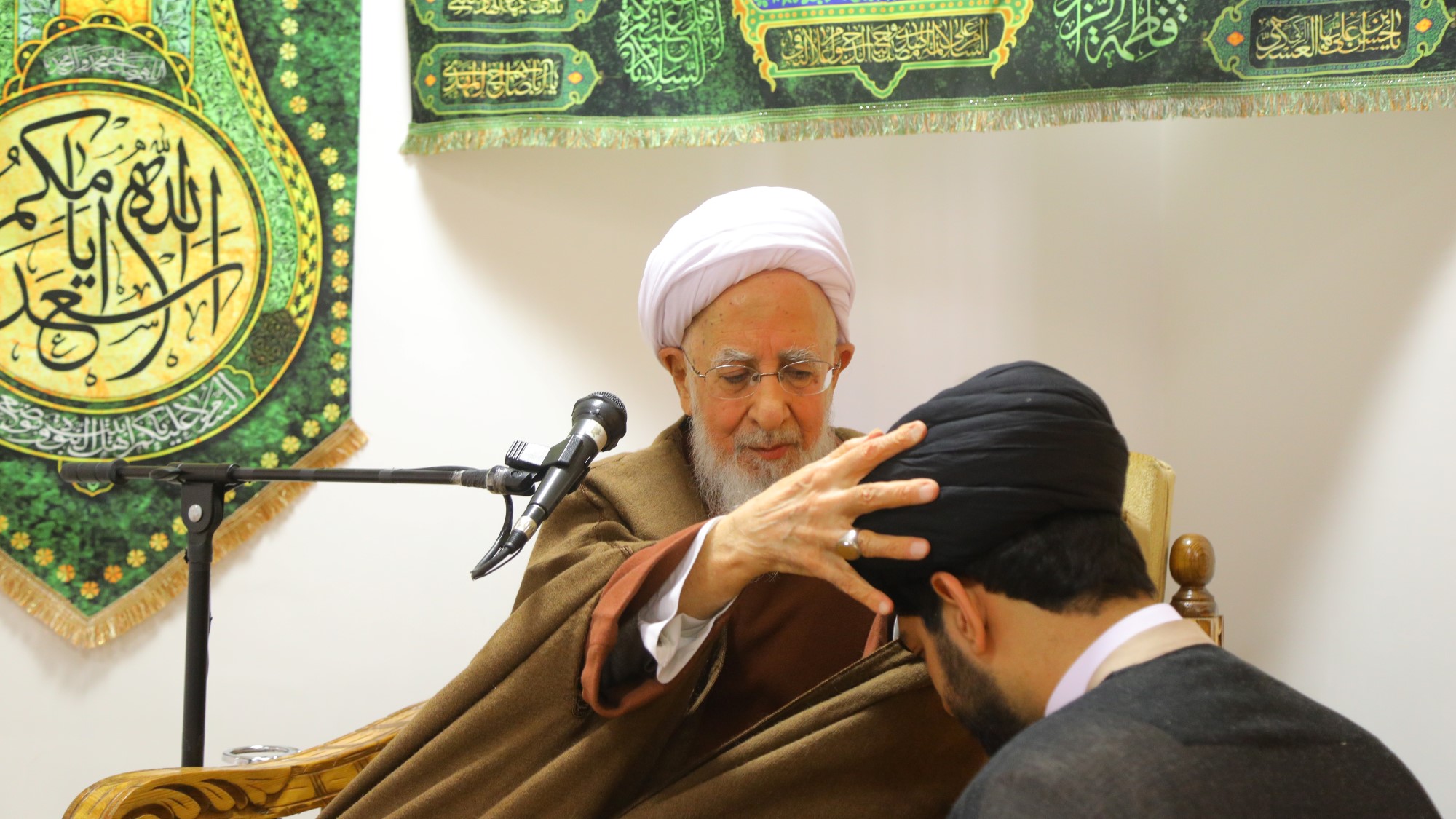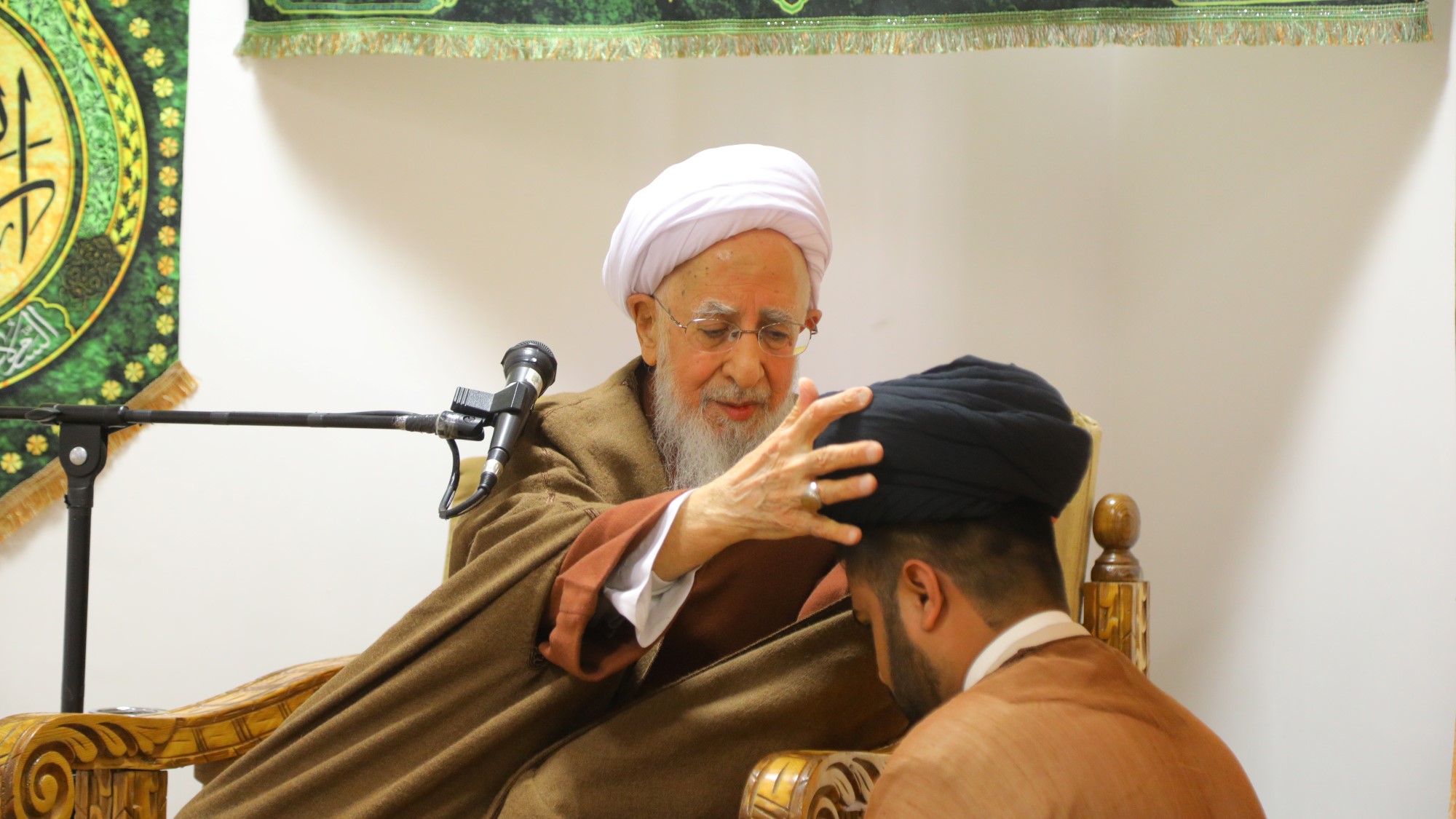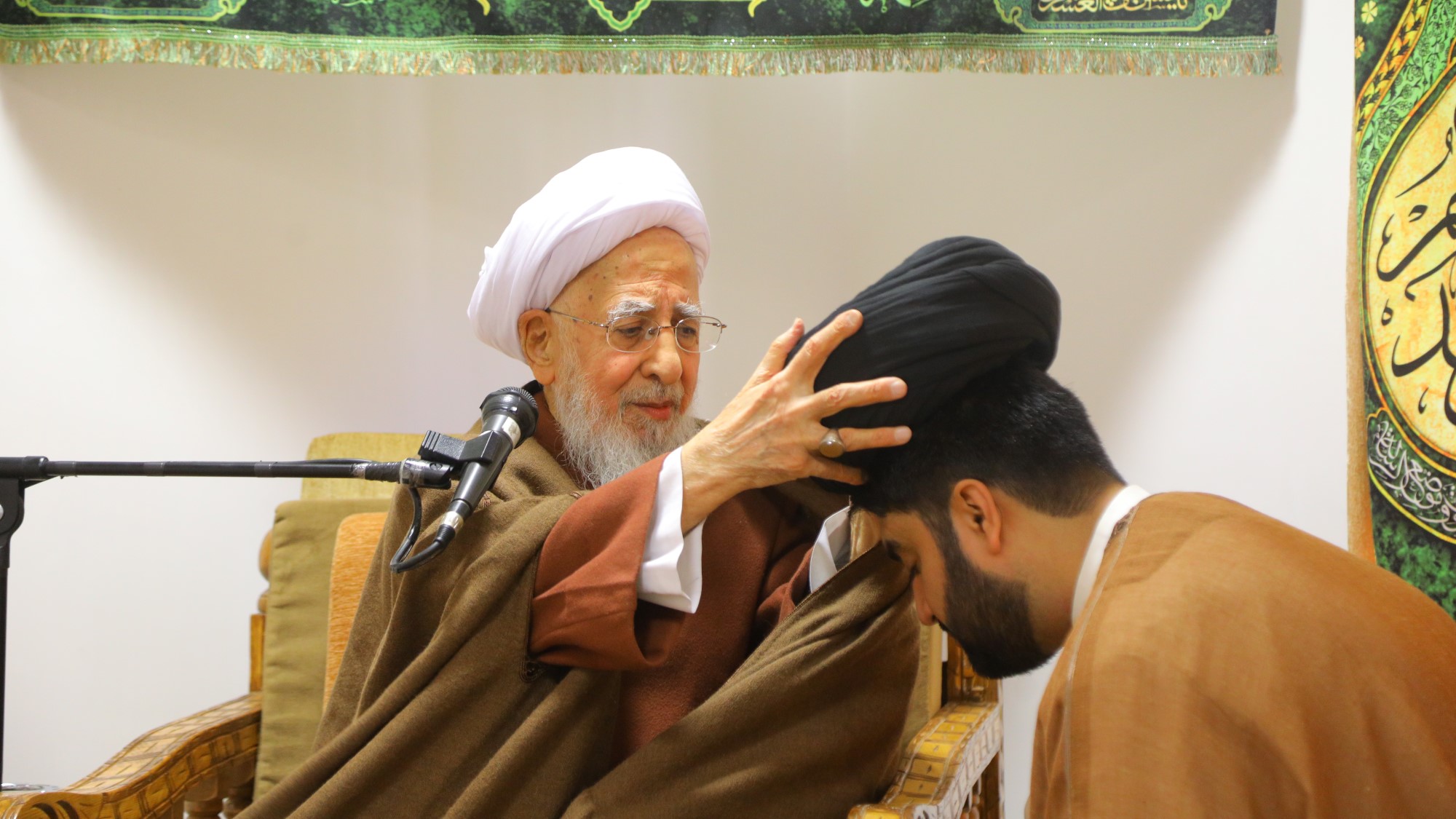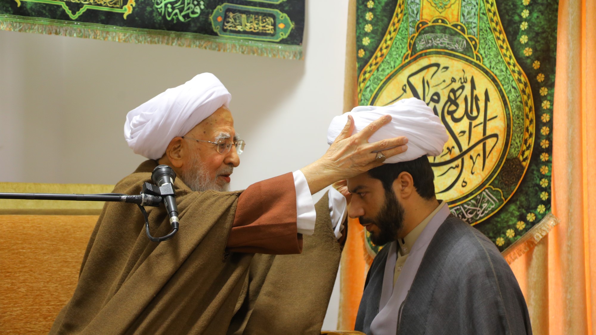 مراسم عمامه گذاری جمعی از طلاب توسط آیت الله العظمی جوادی آملی در سالروز 13 رجب