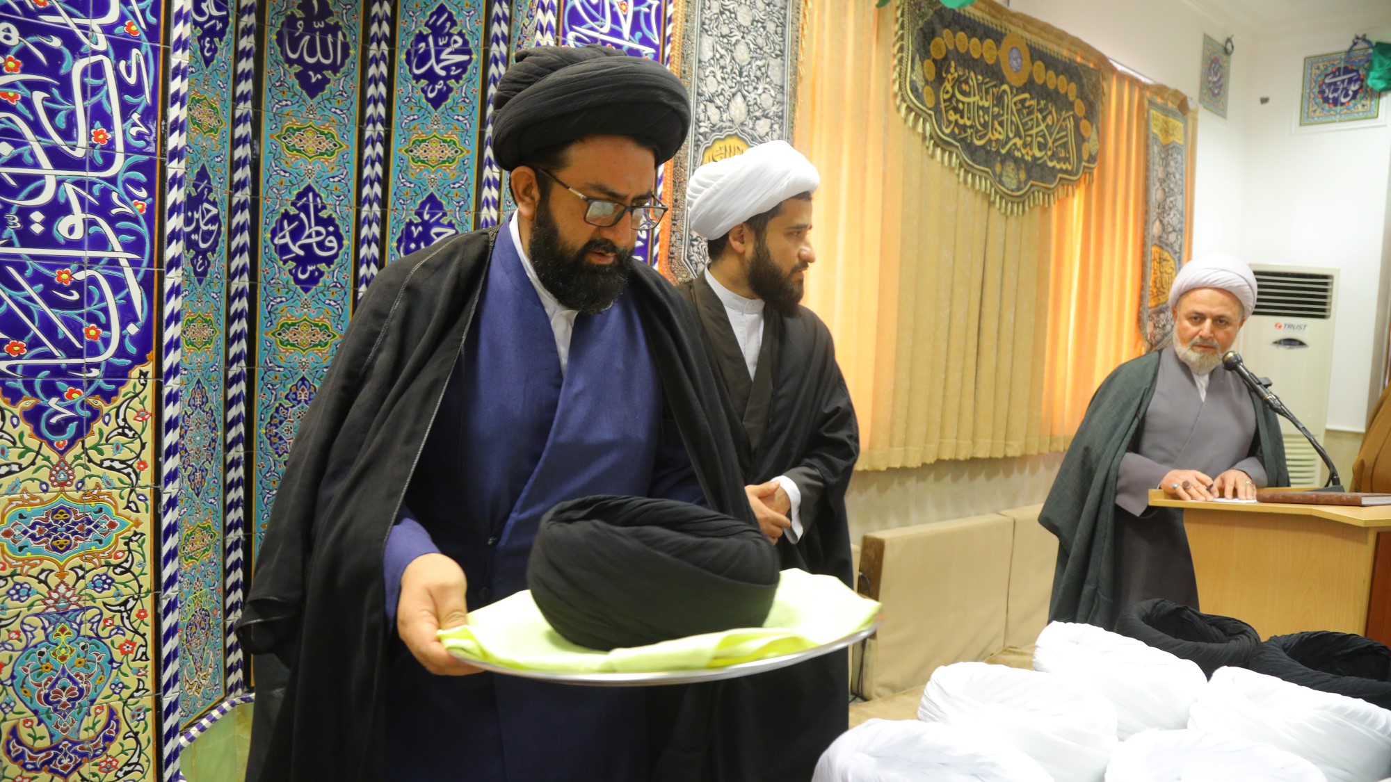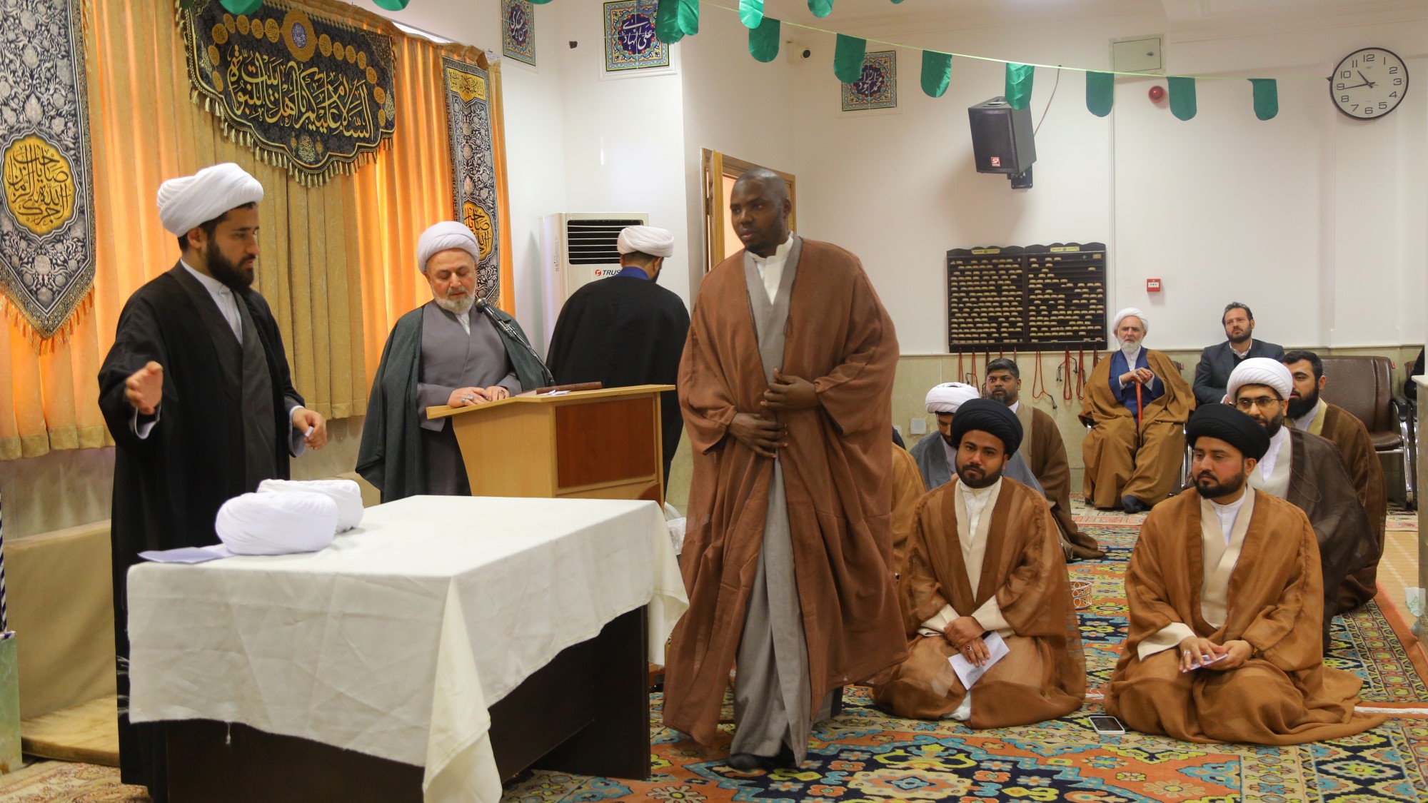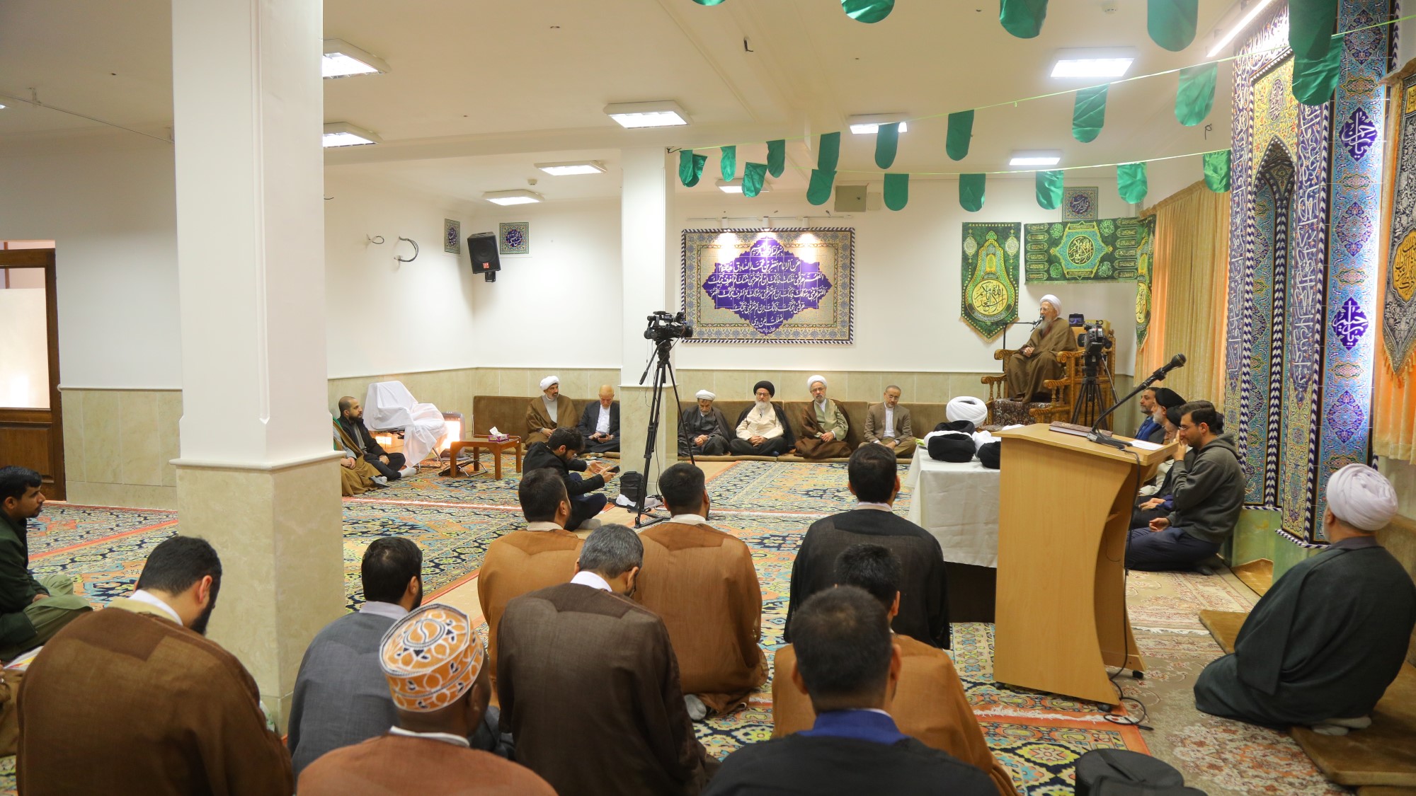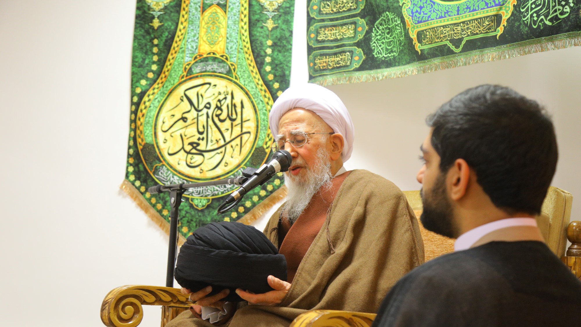 مراسم عمامه گذاری جمعی از طلاب توسط آیت الله العظمی جوادی آملی در سالروز 13 رجب