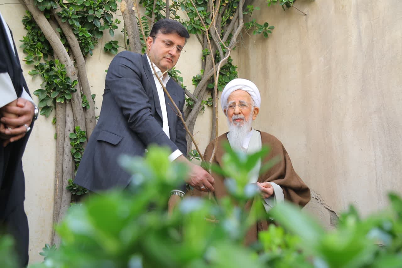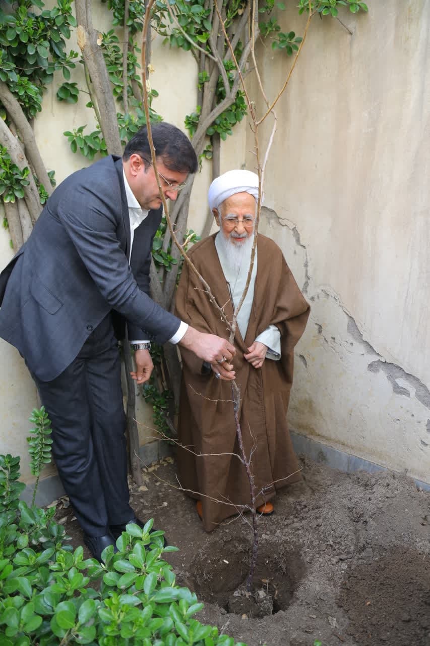 کاشت نهال توسط آیت الله العظمی جوادی آملی در هفته درختکاری
