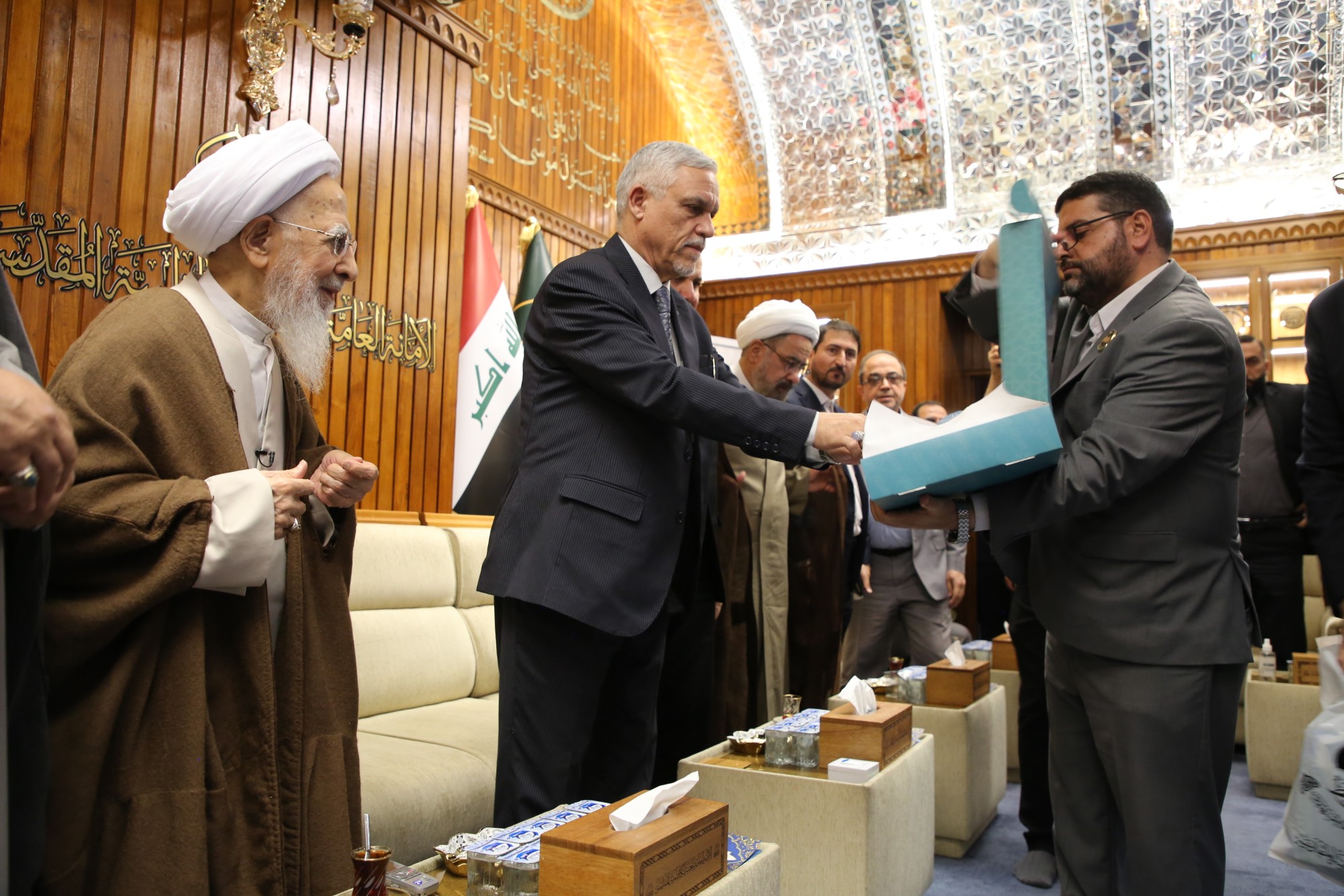 تقدیم روپوش مضجع مطهر آستان مقدس کاظمین (علیهما السلام) به حضرت آیتالله العظمی جوادی آملی
