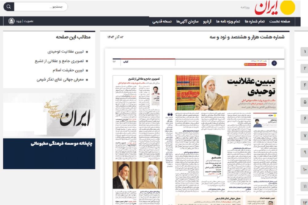 پایگاه اطلاع رسانی اسراء: کتاب «مکتب شیعه به روایت علامه جوادی آملی» جهت معرفی شیعه برای انسان...