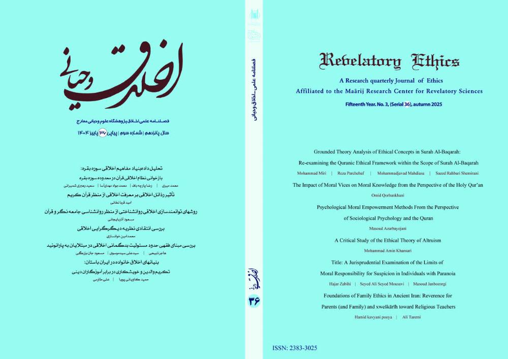 پایگاه اطلاع رسانی اسراء: سی و ششمین شماره از «فصلنامه علمی اخلاق وحیانی» به همت مدیریت نشریات پژوهشگاه علوم وحیانی معارج، منتشر شد.